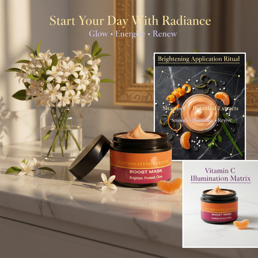 Illuminating Ultima C Boost Mask was created to solve this by delivering visible glow and tone refinement without irritation. It uses a stable vitamin C pathway supported by barrier-friendly brighteners and antioxidant botanicals, then anchors everything in hydration so the skin looks luminous—not tight, reactive, or over-treated.